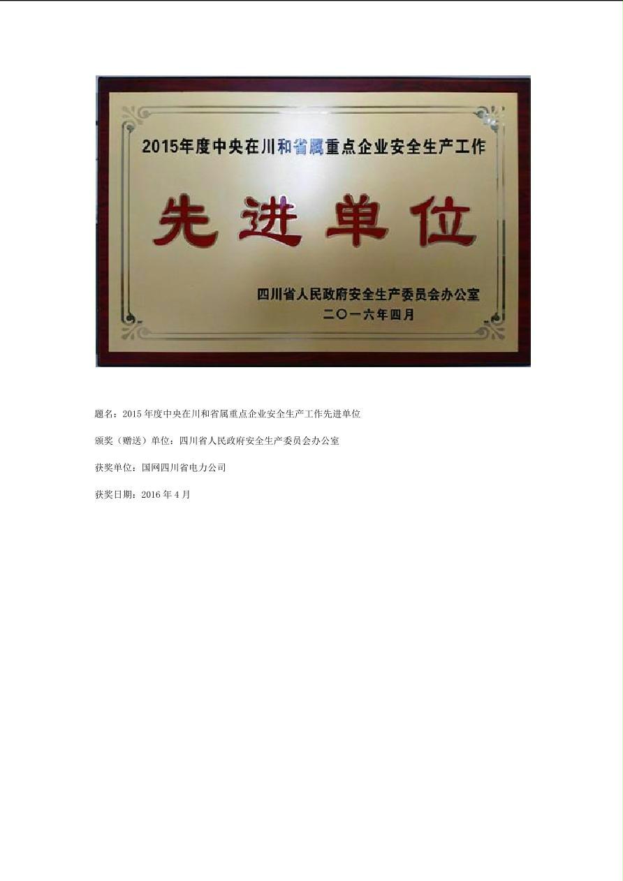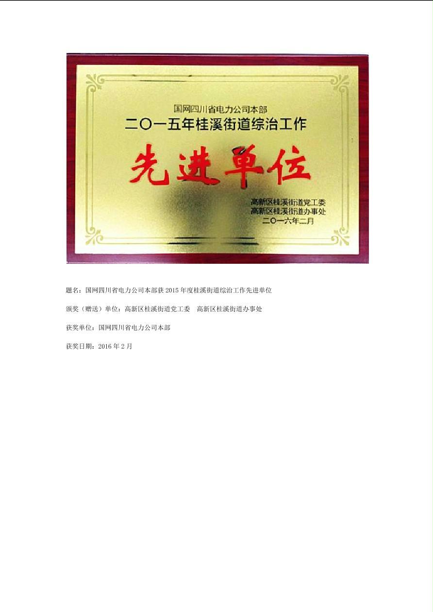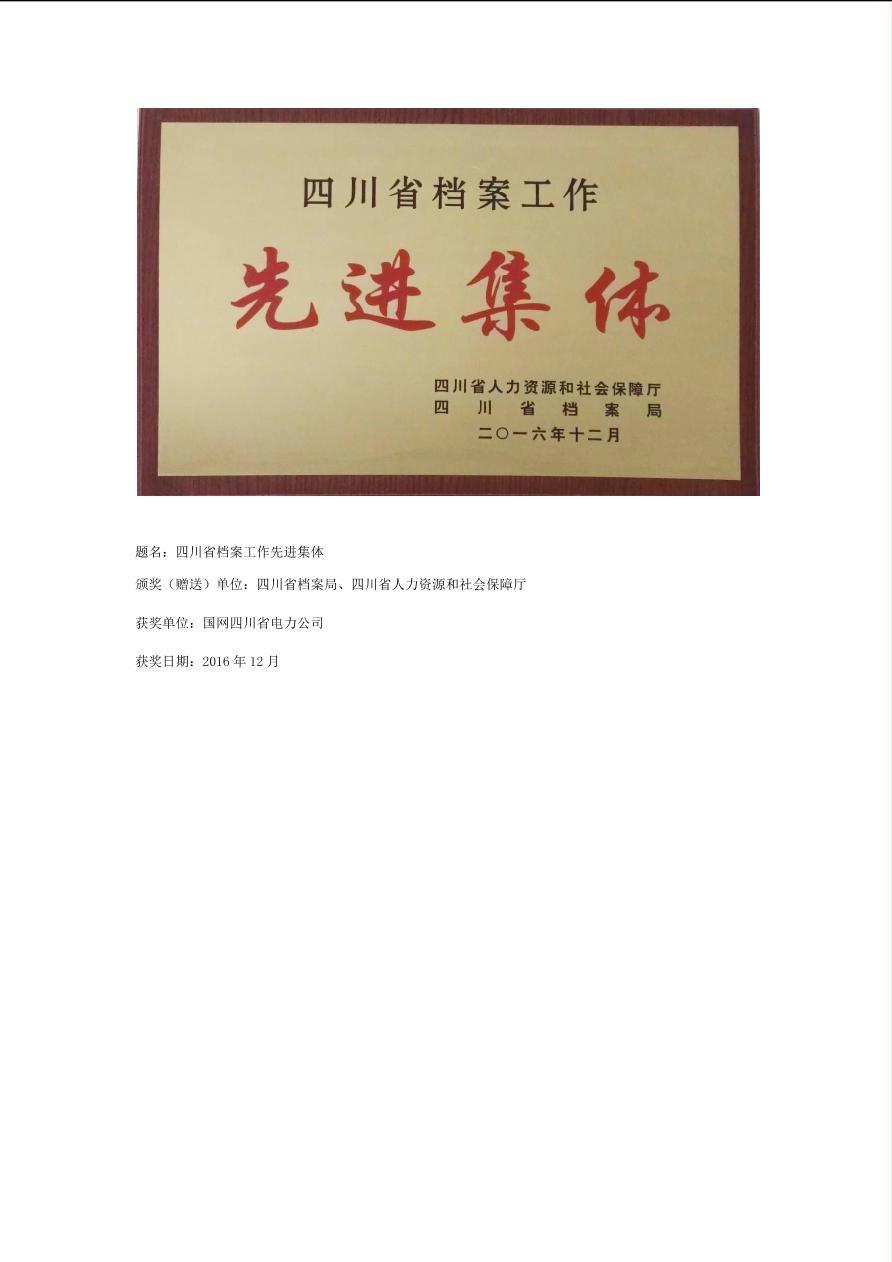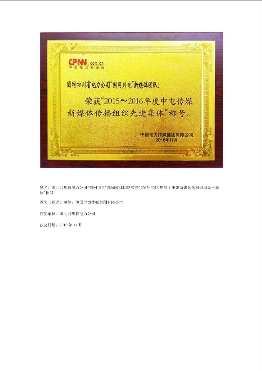 公司2016年荣誉