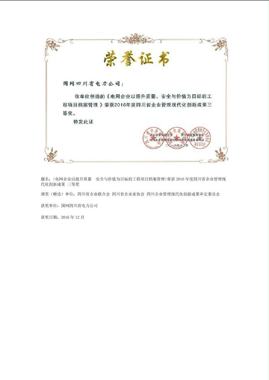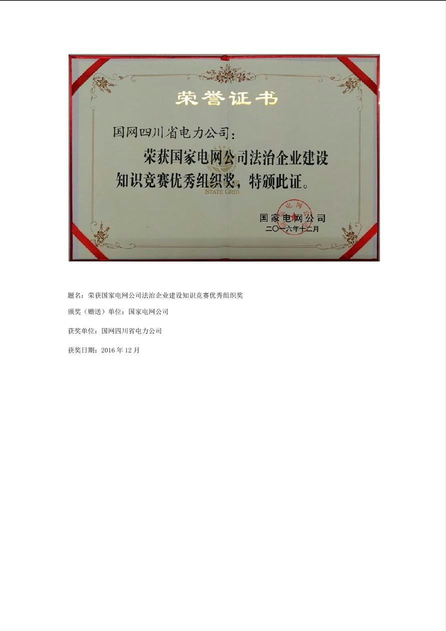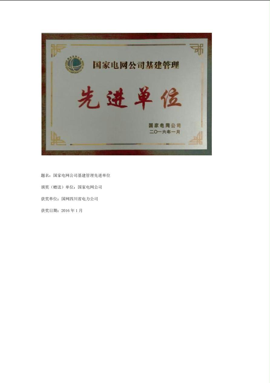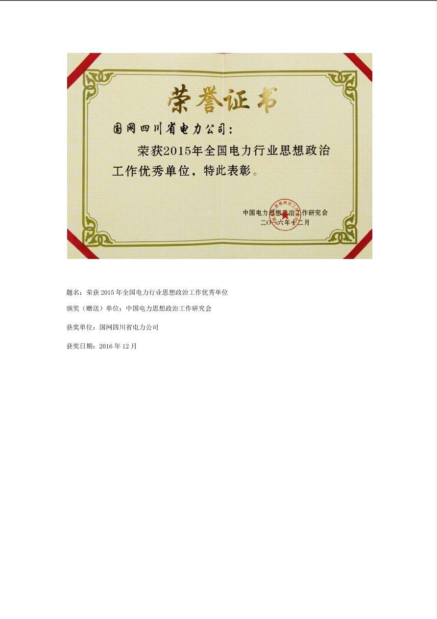 公司2016年荣誉