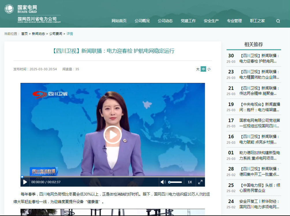 每年春季,四川电网负荷相比冬夏会低30%以上,正是体检消缺的好时机。眼下,国网四川电力组织超10万人次的运维大军赶赴春检一线,为迎峰度夏提升设备“健康值”。 在我国最早投运的特高压直流输电工程向家坝至上海线,近600名电力工人正在为它做年度体检,自投运以来,这条东西能源大动脉已累计输送近3900亿千瓦时的清洁电能。 国网四川直流中心±800千伏复龙换流站副站长 郎作云:我们可以把电比作血液,换流站就像是我们的心脏,我们检修的作用就是将这颗“心脏”的重要零部件进行清洗、维修和更换,确保它能够在夏季大负荷期间可靠运行。 要给这些动辄几十米高的巨无霸洗澡,国网四川送变电公司研发了高空自动清洗车,将专业清洗设备与高空作业车车臂相结合,检修人员在地面就可以实现对高空设备360度全方位清洗。 国网四川送变电公司±800千伏复龙换流站电气设备检修项目经理 段钰:清洁的时候要格外小心,像我们的作业车都是改装过的,可以说是全身眼睛,一旦接近电气设备,就会发出警示信息,碰及设备则会强制制动,确保检修过程中的设备安全。 春暖花开,正是鸟类繁殖的季节,在眉山,运维人员正通过无人机飞巡检测铁塔有没有野生鸟类的“产房”。 国网眉山供电公司运维班班长 周玉波:我们巡线的时候经常发现有鸟类在铁塔上筑巢,鸟巢如果有金属丝会造成输电线路短路,造成输电故障,而且鸟粪会腐蚀供电设备,降低(设备)使用寿命。 高耸的铁塔,坚固的构架,成为了鸟类筑巢的首选,是生态向好的表现,而电力运检对这种情况也从单纯驱离转向生态补偿,大量新材料、新装备的技术创新,让电网安全的同时,也为鸟类创造了更好的栖息环境。 国网眉山供电公司输电运检室副主管 蒋中杰:这个防护伞卡在绝缘子上方非常稳,能避免鸟粪接触到绝缘子,保证供电安全,同时也降低了鸟类触电的风险,能更好地保护鸟类,维护生态平衡。 在德阳,去年投运的220千伏玉皇变电站也迎来了首次“体检”。 国网德阳供电公司220千伏玉皇变电站集中检修现场负责人 谷旭东:我们要在5天内完成常规需要2周工期的检修工作,此次检修作业不仅是对设备运行状态的全面“诊断”,更是为彻底消除潜在隐患。 据了解,今年春季,国网四川电力投入12万人次参与春检,为今年迎峰度夏可靠供电提供坚强电网保障。 (未经允许 禁止转载)