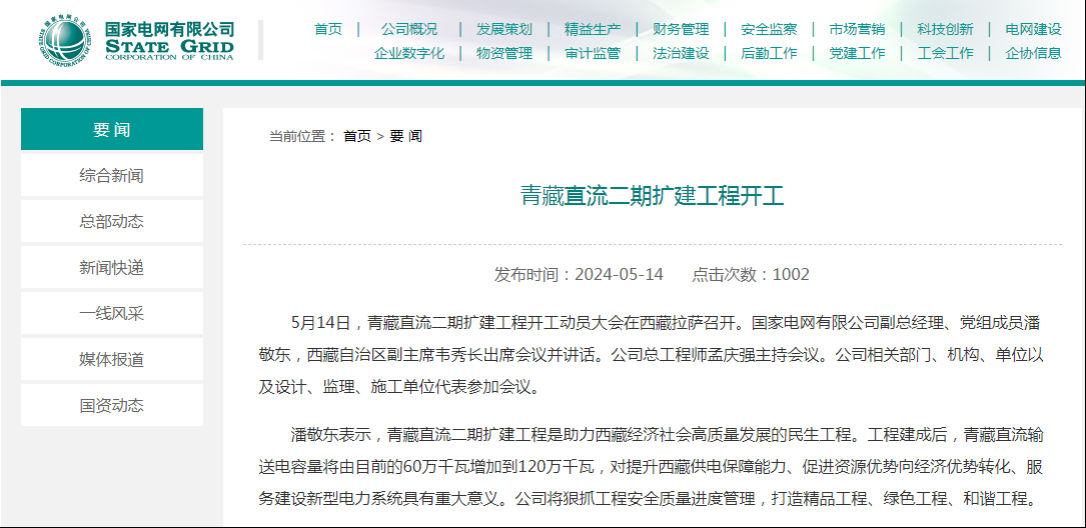5月14日,青藏直流二期扩建工程开工动员大会在西藏拉萨召开。国家电网有限公司副总经理、党组成员潘敬东,西藏自治区副主席韦秀长出席会议并讲话。公司总工程师孟庆强主持会议。公司相关部门、机构、单位以及设计、监理、施工单位代表参加会议。 潘敬东表示,青藏直流二期扩建工程是助力西藏经济社会高质量发展的民生工程。工程建成后,青藏直流输送电容量将由目前的60万千瓦增加到120万千瓦,对提升西藏供电保障能力、促进资源优势向经济优势转化、服务建设新型电力系统具有重大意义。公司将狠抓工程安全质量进度管理,打造精品工程、绿色工程、和谐工程。 韦秀长强调,自治区将加强与国家电网公司等各方密切配合,用好用足各项政策,抓紧谋划和推进一批打基础、利长远的重大电网工程,加快推动西藏电网骨干网架建设和清洁能源产业发展。 在藏期间,潘敬东一行调研拉萨换流站及其配套调相机、线路工程现场,并组织召开青藏直流二期扩建工程建设协调会。 (未经允许 禁止转载)